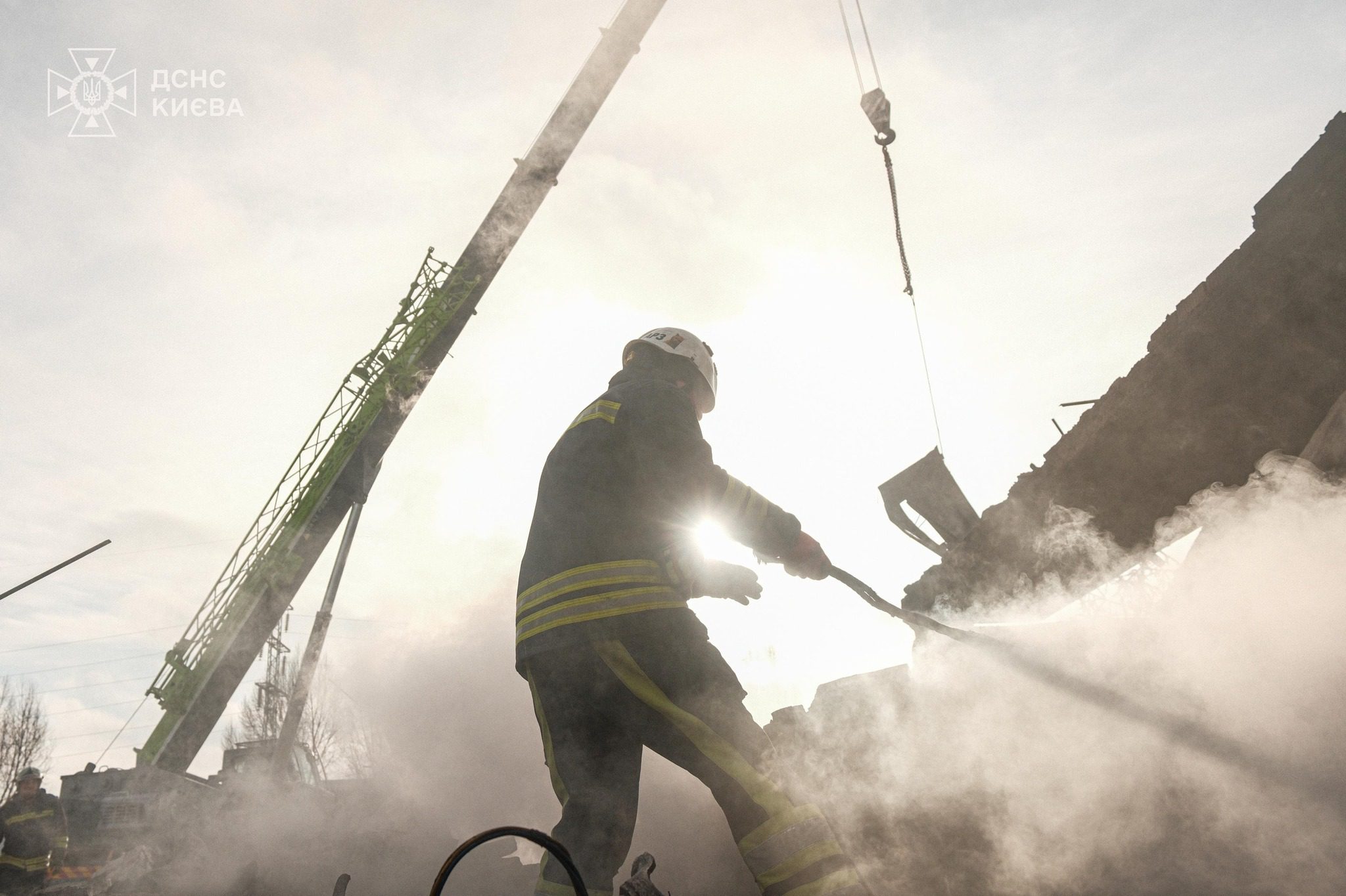 “Наразі за двома адресами у Деснянському та Дніпровському районах рятувальники продовжують розбирати залишки конструкцій пошкоджених будівель. Залучені 95 фахівців ДСНС та 26 одиниць техніки, у тому числі важка інженерна техніка”, – поінформували рятувальники опівдні вівторка, 25 листопада.
