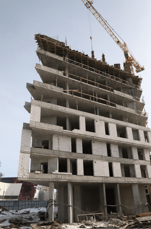 У будинку № 42 завершено каркас і сходові конструкції, перегородки та вентиляційні канали виконані на 98%. Фасадні роботи майже завершені: стіни та покрівля 98%, вікна – 98%, утеплення – 87%. Інженерні мережі перебувають на різних стадіях готовності: вентиляційні блоки готові, а от ліфти фактично (99%), електрика – 84%, каналізація – 80%.