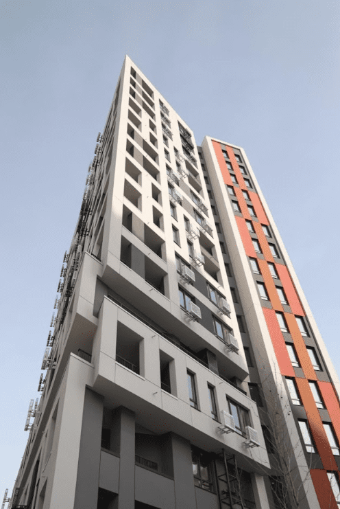 У будинку № 40 завершено основні будівельні роботи. Тим часом у процесі утеплення та встановлення кошиків для кондиціонерів (95%). Внутрішні чорнові роботи та встановлення протипожежних дверей, вікон і вітражів завершені повністю, плитка на першому поверсі виконана на 85%. Інженерні мережі, включно з електрикою, водопостачанням, теплом та ліфтами також повністю змонтовані, а системи пожежної безпеки – на 95%.