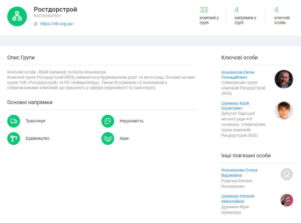 Юрий Шумахер и Евгений Коновалов являются ключевыми лицами группы “Ростдорстрой”, основным направлением деятельности которой значится строительство дорог и автострад. Также Юрий Шумахер является депутатом Одесского горсовета, от фракции “Доверяй делам“, которая представляет партию мэра Одессы Геннадия Труханова.