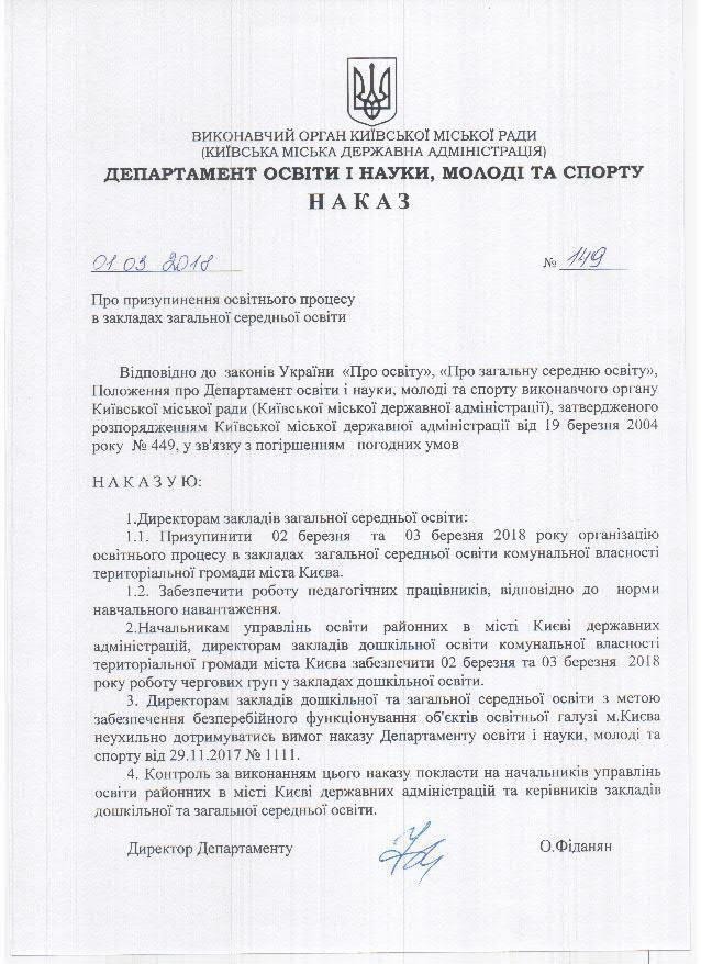 Об этом KV стало известно из приказа Департамента образования и науки, молодежи и спорта Киевской горгосадминистрации (КГГА).