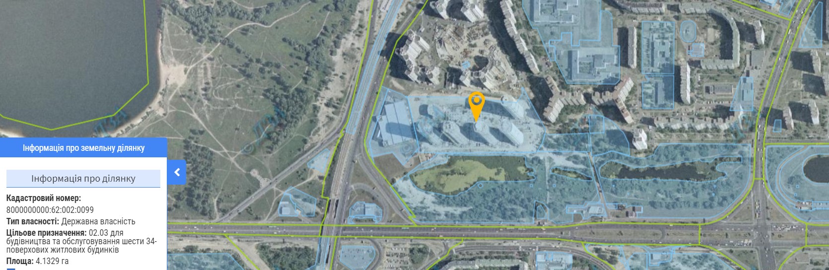 Земельный участок (4,13 га) по просп. Генерала Ватутина, 9 во 2-м микрорайоне жилого массива Троещина (кадастровый номер 8000000000:62:002:0099) для этого строительства был отведен ГУ внутренних войск МВД только в 2004 году (решение Киевсовета от 18.03.2004 №125/1335). Предполагалось, что на участке возведут шесть домов за три года. Но строительство затянулось. А в 2008 году его вообще заморозили.