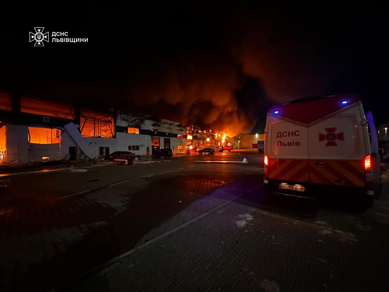 На Львівщині триває гасіння складських приміщень на декількох локаціях загальною площею понад 10 тисяч кв. м. Усе – цивільні обʼєкти.