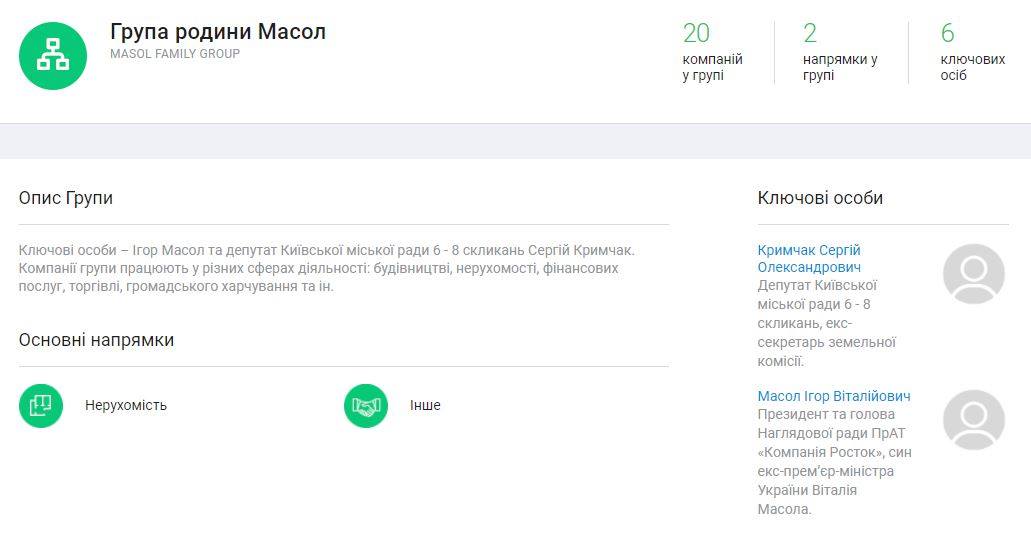 Зазначимо, що за даними системи Youcontrol, ПрАТ “Росток” входить до групи “Група сім’ї Масол”. В описі групи вказується, що ключовими особами в ній є Ігор Масол та депутат Київради 6-8 скликання Сергій Кримчак (фракція “Єдність”).