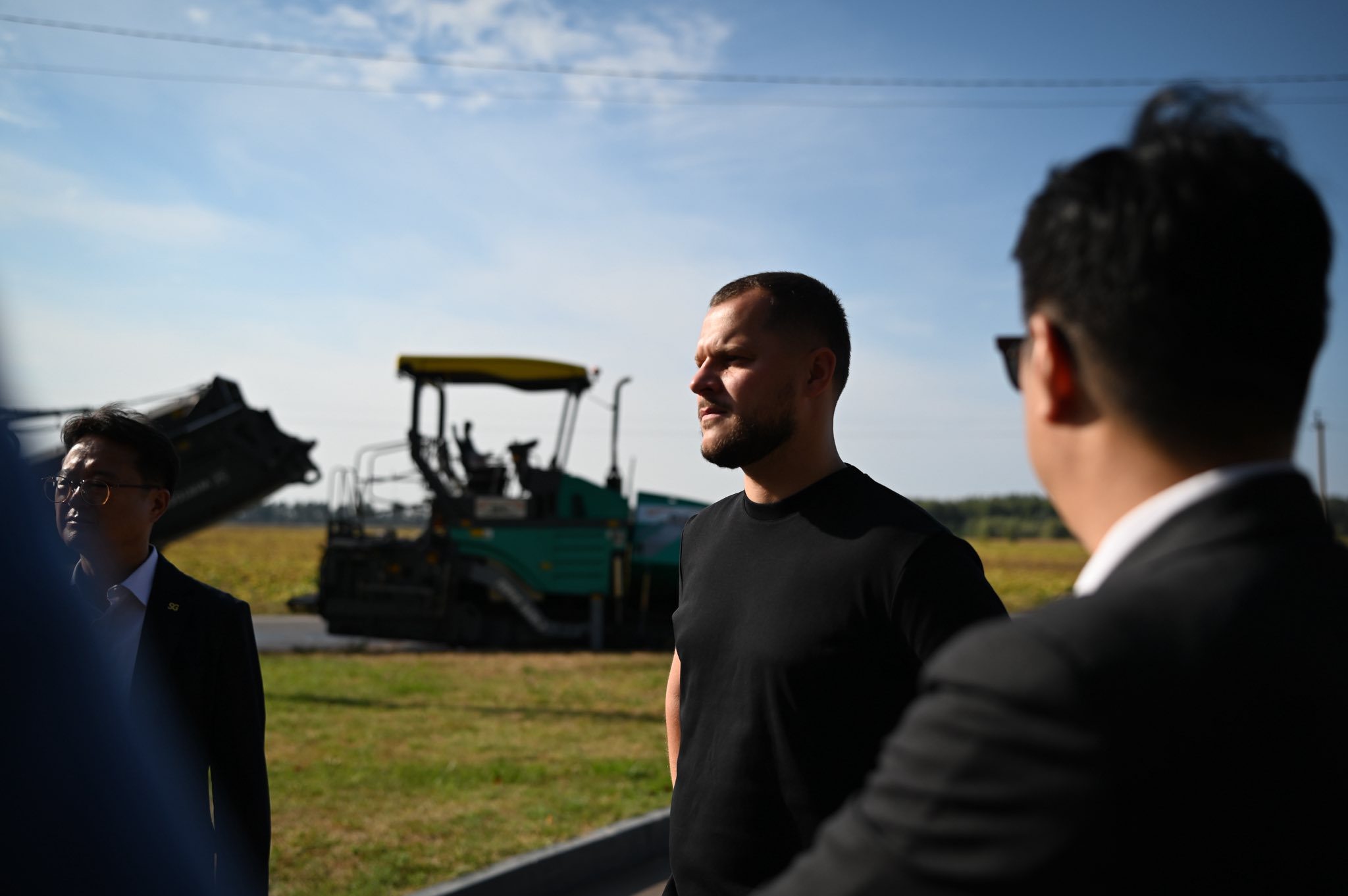 Голова КОДА разом із головою Агентства відновлення Сергієм Сухомлином та представниками компаній POSCO International і SG Ukraine оглянули тестову ділянку протяжністю 750 м, що корейські партнери зробили власним коштом.