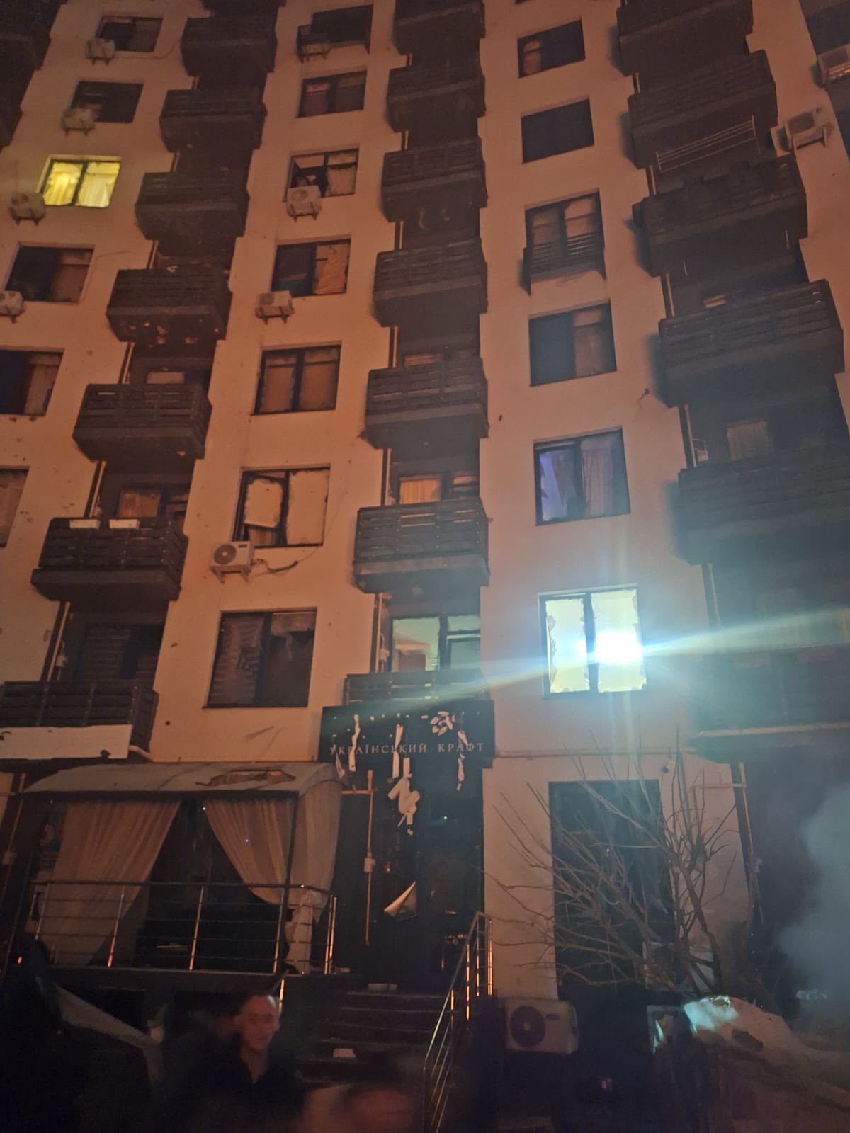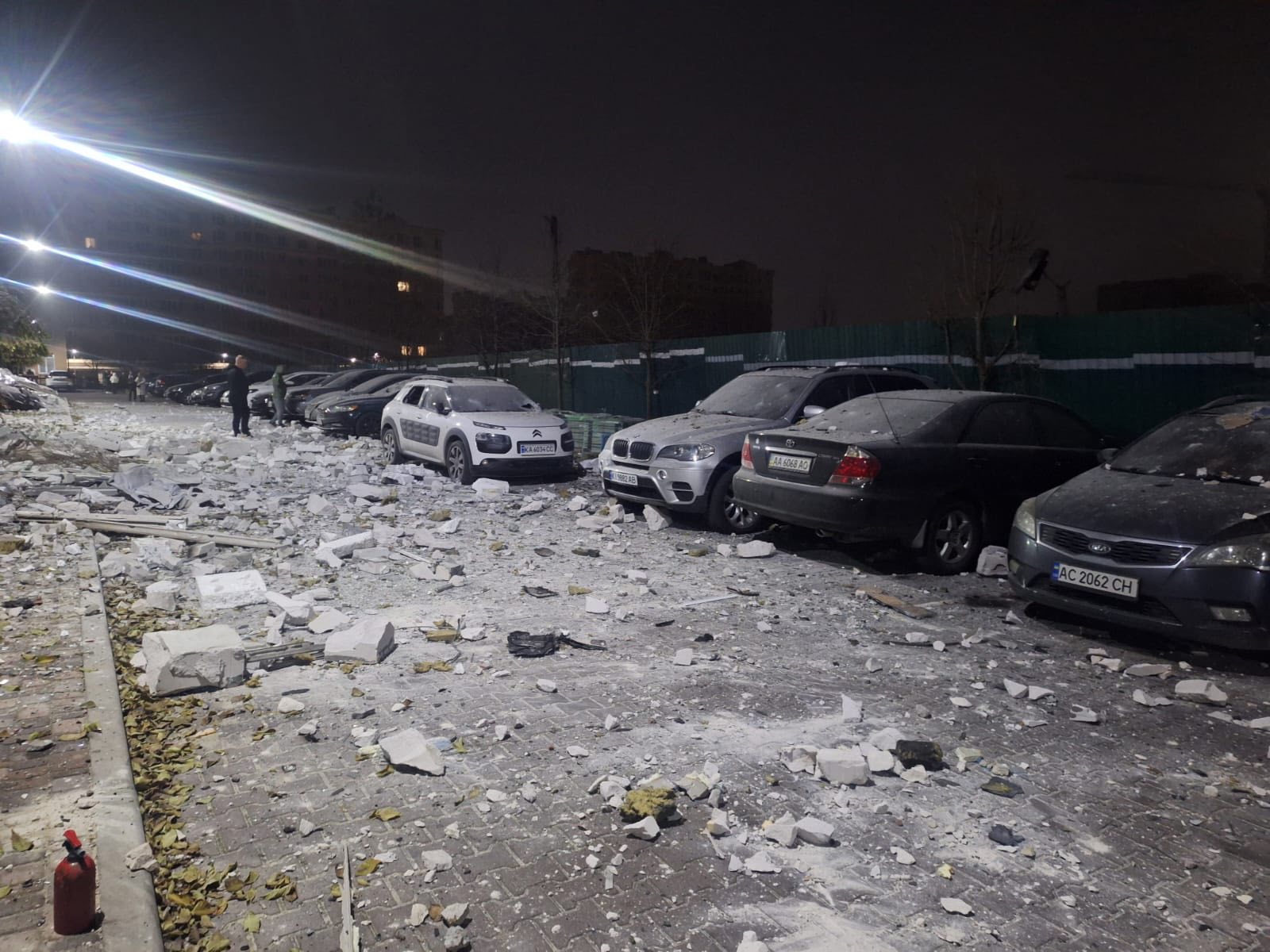 • ЖК У-Квартал: уламки впали на подвірʼя. Пошкоджені вікна в квартирах. Сталося загоряння автомобілів.