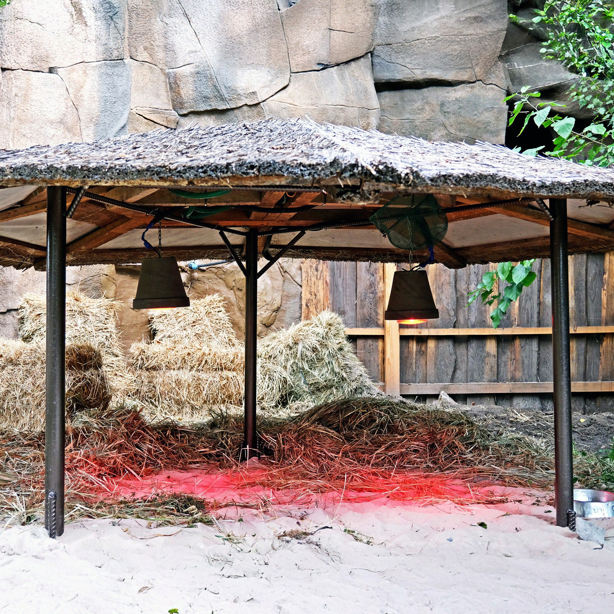 Зазначається, що 400-метровий природний простір з зеленою травою обладнали тіньовими навісами з ІЧ-обігрівом, свіжим пісочком, кам’яними гротами та автоматичними напувалками.