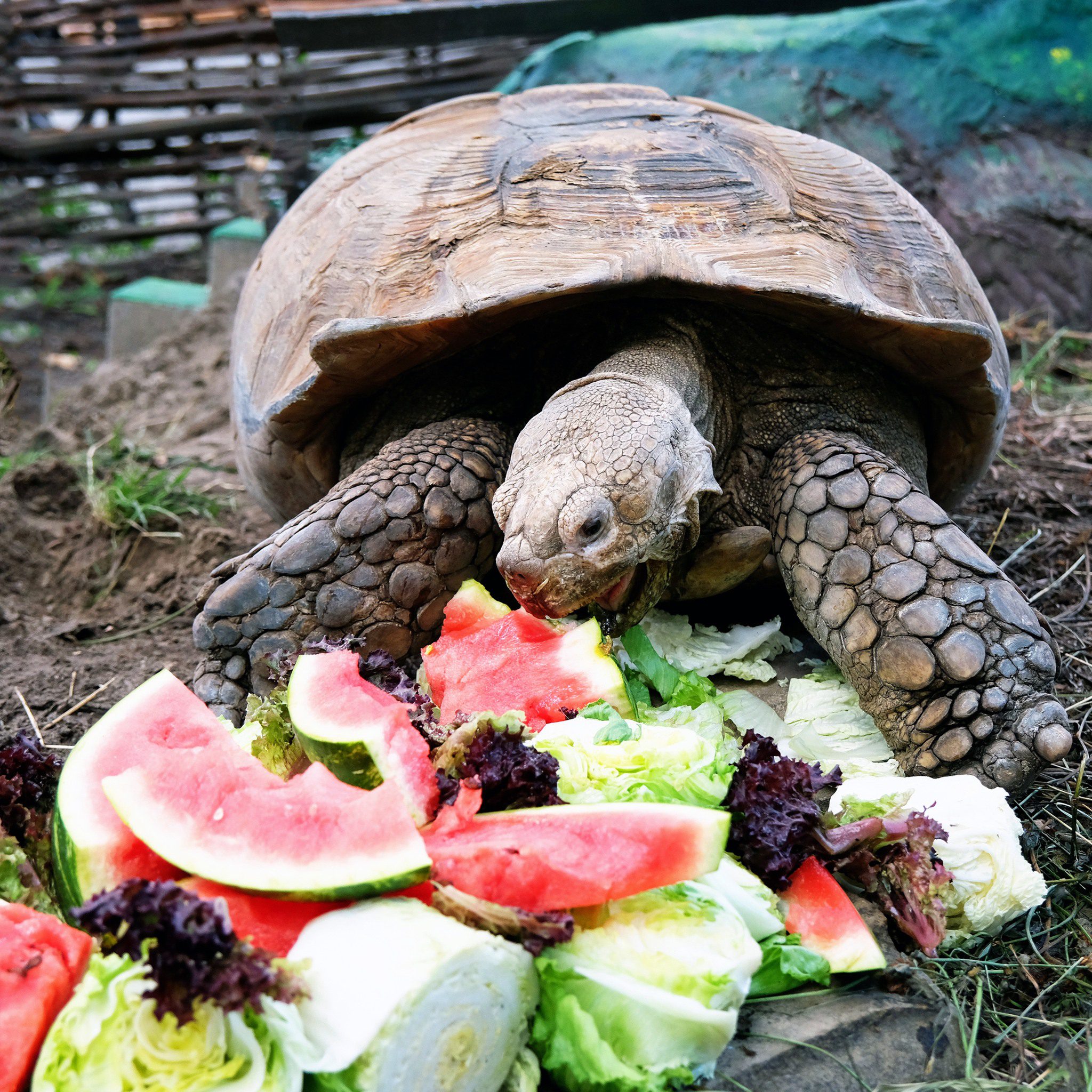 Фахівці додали, що раціон цих черепах складають: зелені салати, пекінська капуста, соковиті  кавунчики та інша багата на вітаміни і мінерали садовина й городина.