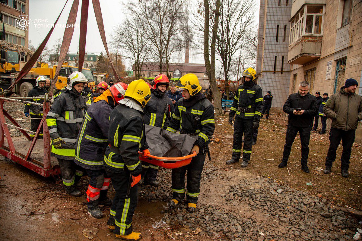У Тернополі рятувальники деблокували з-під завалів тіла жінки та двох дітей. Таким чином кількість загиблих внаслідок російського ракетного удару в ніч на 19 листопада зросла до 31 людини, серед них 6 дітей.