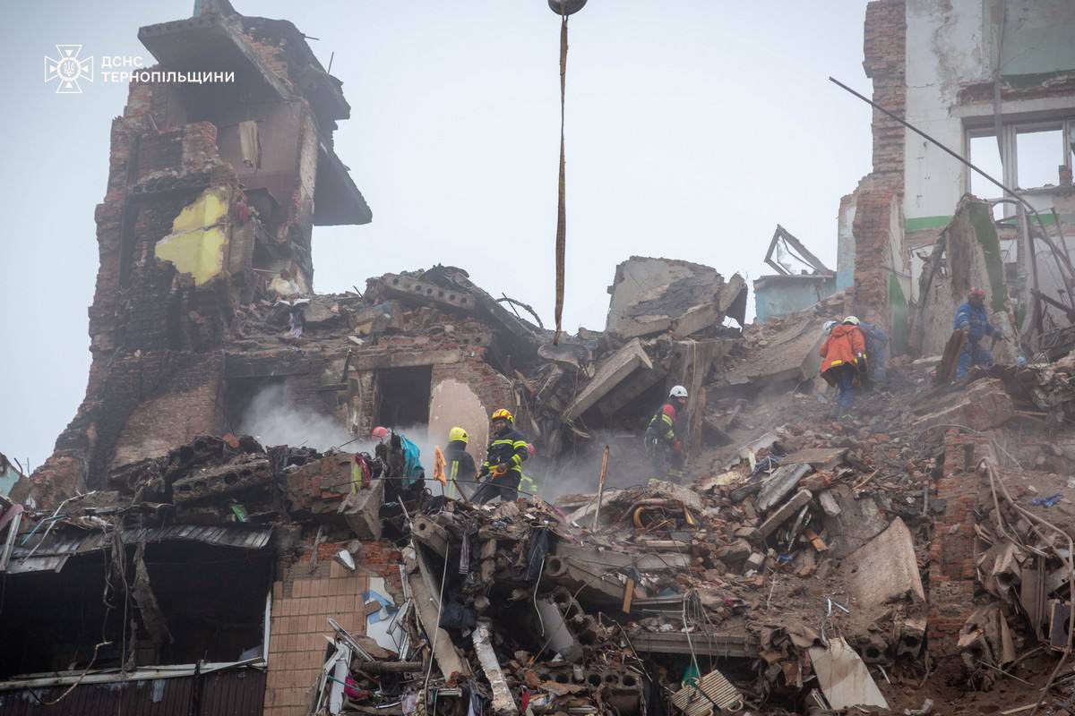 У Тернополі ввечері 20 листопада рятувальники дістали з-під завалів будинку тіло жінки. Число вбитих ракетним ударом рф 19 листопада зросло до 27 людей, серед них 3 дитини. На зв’язок не виходять 14 осіб, пошуково-рятувальна операція триває.