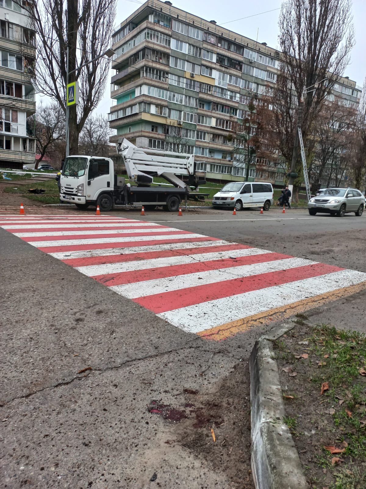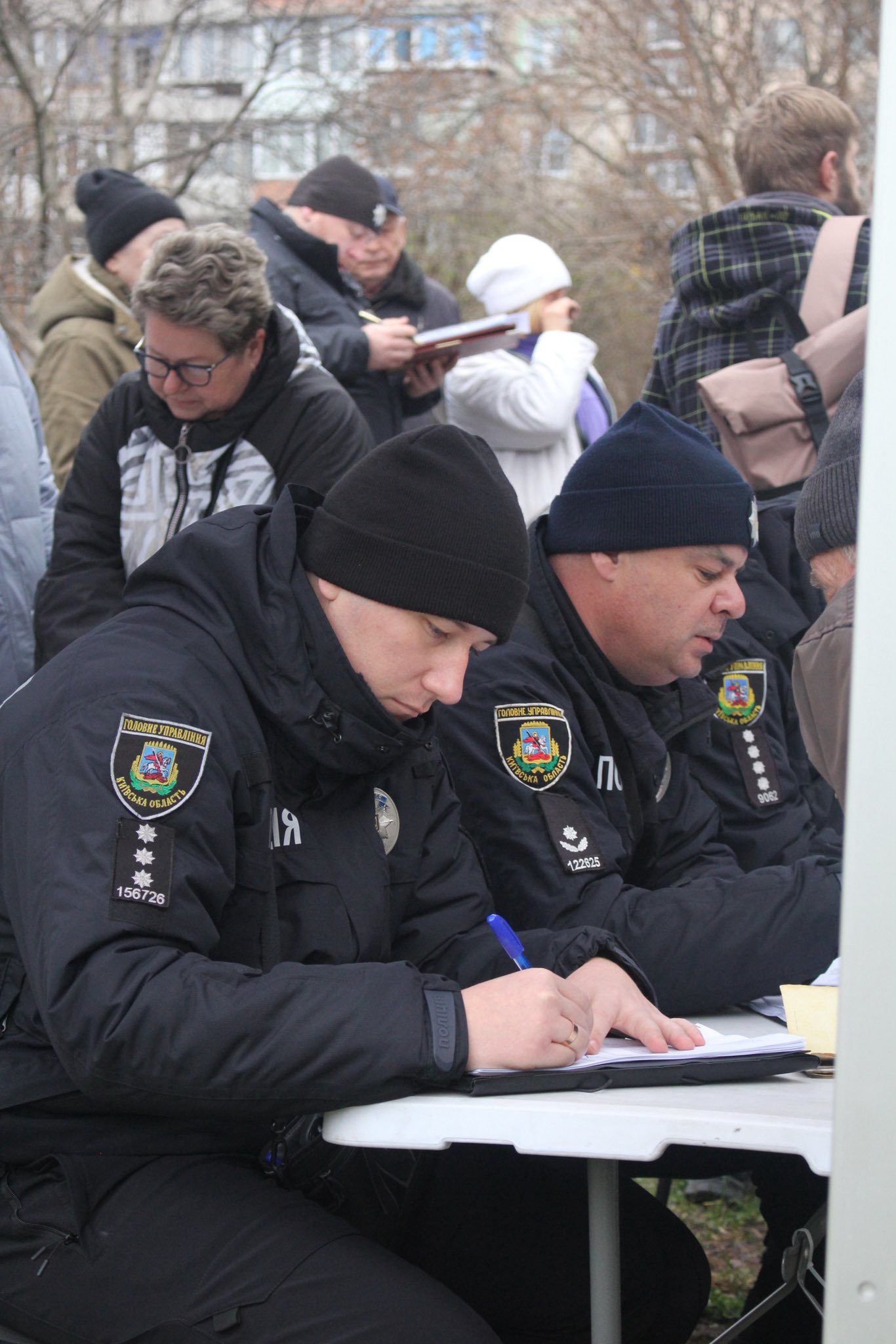 Біля будинків організовано прийом заяв Нацполіцією та видачу плівки Вишгородською міськрайонною організацією ТЧХУ.