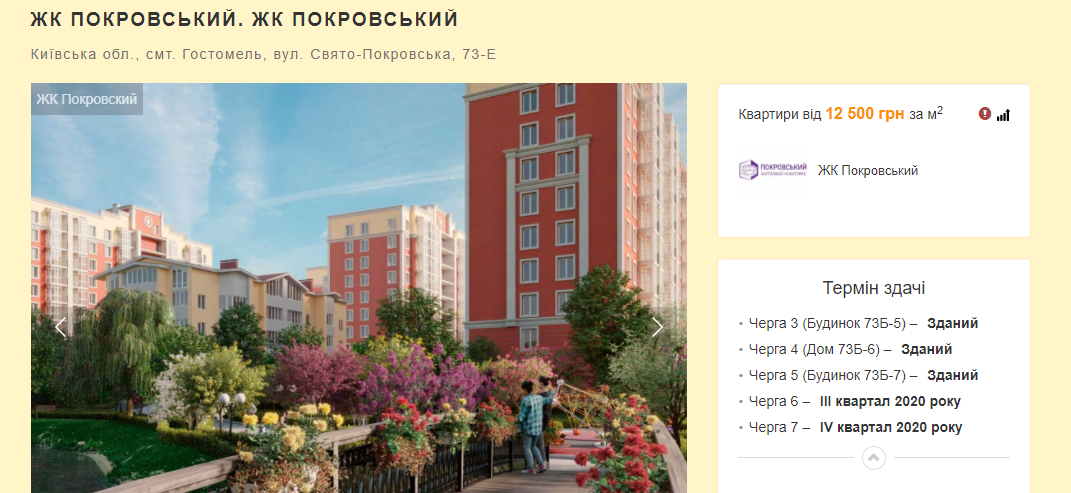 Відмітимо, що за інформацією із відкритих джерел, за адресою вул. Свято-Покровська, 73-Є в Гостомелі знаходиться ЖК “Покровский”.