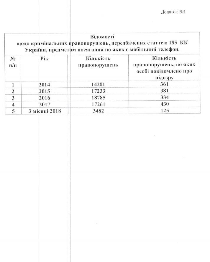 В ответе на запрос депутата ГУ Нацполиции сообщило следующую статистику краж мобильных телефонов: