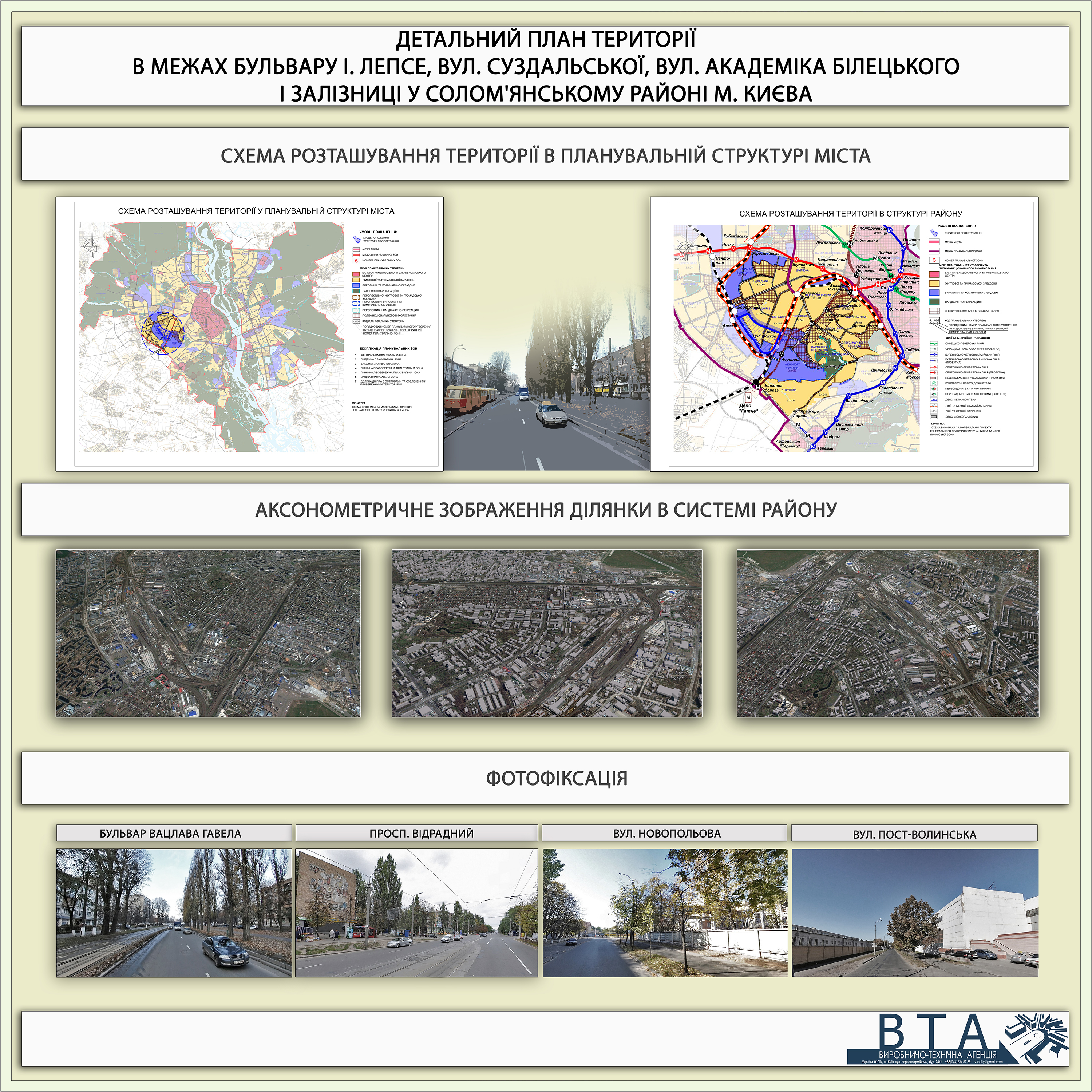 Комиссия рассматривала проект решения № 08/231-2864/ПР от 27 ноября 2017 года “Об утверждении детального плана территории в пределах бульвара Вацлава Гавела (И. Лепсе), улиц Суздальской, Академика Белецкого и железной дороги в Соломенском районе Киева”.