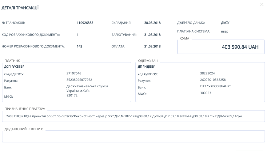 Как выяснила KV, некоторые средства на реконструкцию моста около с. Залесье успели выделить. В частности, в августе 2018 года 68,6 тыс. гривен было потрачено на изготовление проектной документации данного объекта, плательщиком указано Государственное специализированное предприятие “Управление капитальным строительством Зоны отчуждения”, получатель – ГП “Научно-исследовательский институт строительного производства”.
