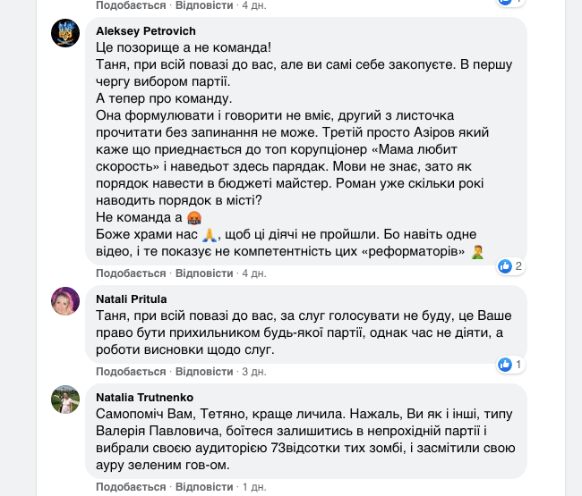 На своїй сторінці у Facebook зауважує, що їхня команда “незалежна від “договорняків” та “забудовників”.
