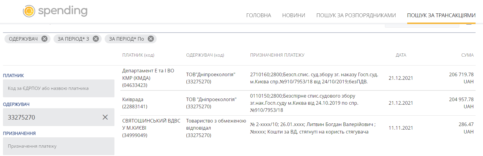 Примечательно, что еще 21 декабря 2021 года ООО “Днепрэкология” получило из столичного бюджета от Киевсовета и Департамента экономики и инвестиций КГГА компенсацию судебного сбора в сумме 511 тыс. гривен.