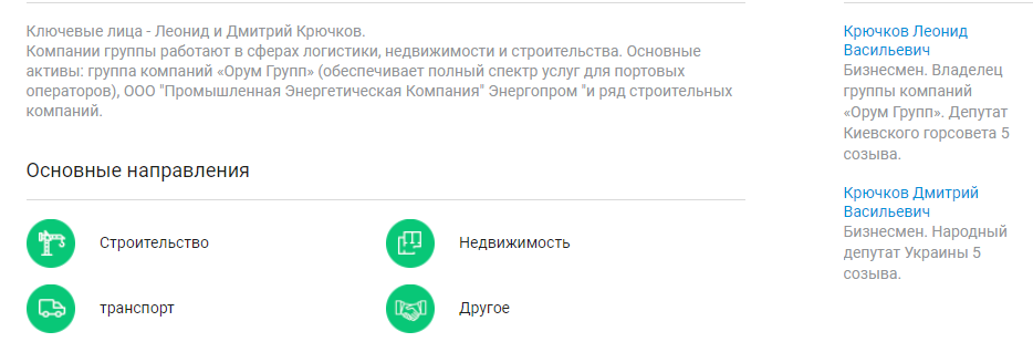 Компания входит в бизнес-группу братьев Леонида и Дмитрия Крючковых. Компании группы работают в сферах логистики, недвижимости и строительства. Основные активы: группа компаний “Орум Групп”, обеспечивающая полный спектр услуг для портовых операторов, ООО “Промышленная Энергетическая Компания “Энергопром” и ряд строительных компаний.