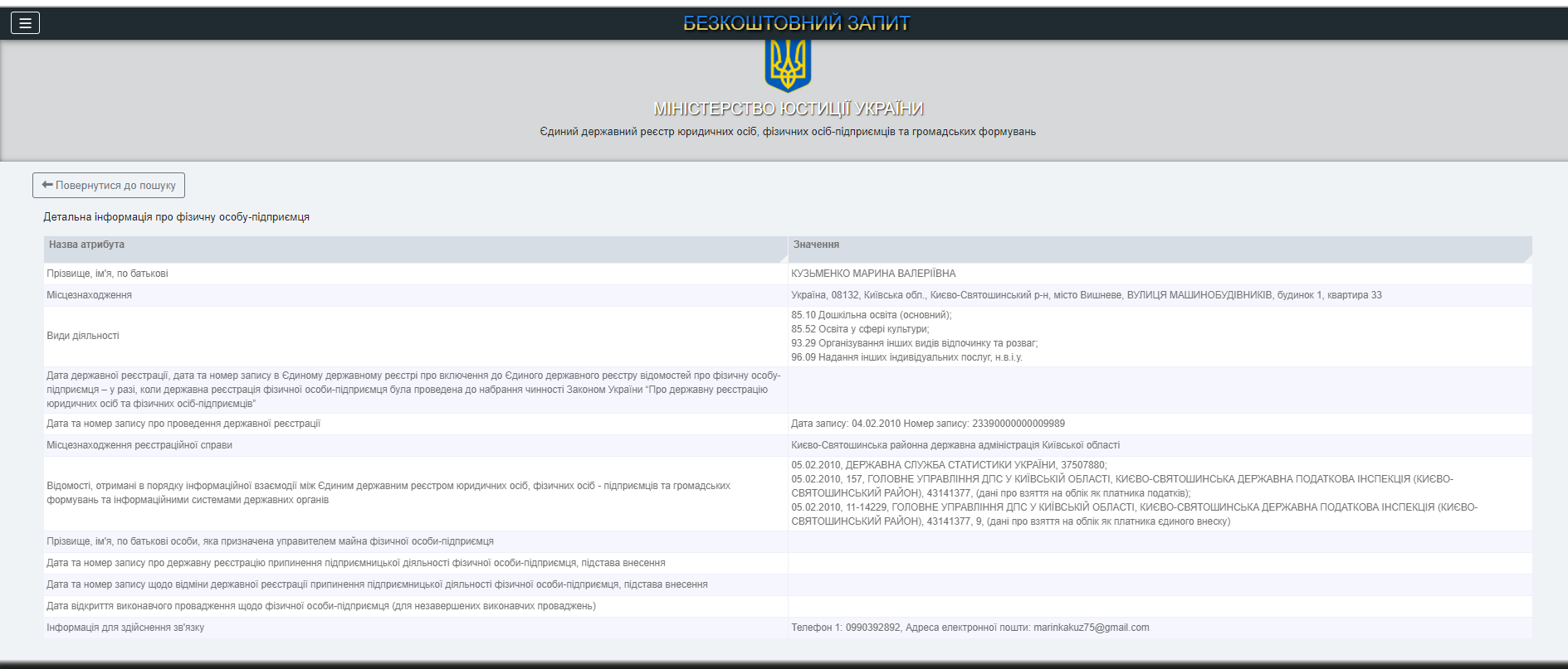 Виховуватиме 40 дітей із міста Вишневе і фізична особа-підприємець Марина Валеріївна Кузьменко. Надавати дошкільну освіту вона має намір у місті по вулиці Івана Франка, 23-А. Як ФОП, вона була зареєстрована ще в лютому 2010 року.