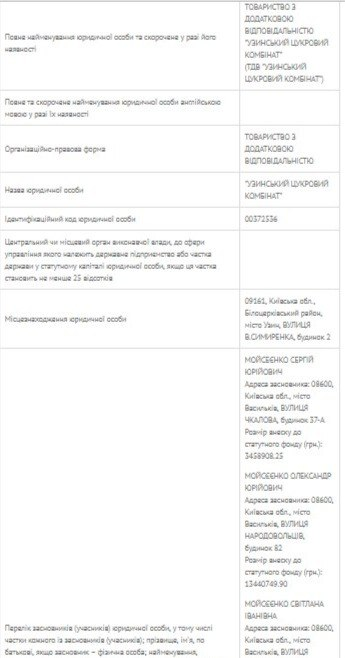* ТДВ “Узинський цукровий комбінат” (код ЄДРПОУ: 00372536)