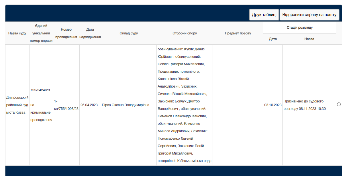Скріншот ухвали суду по цьому провадженню від 8 листопада 2023 року