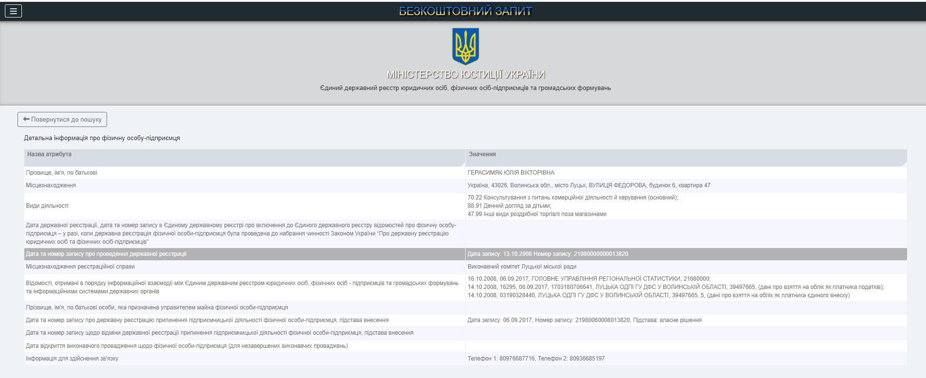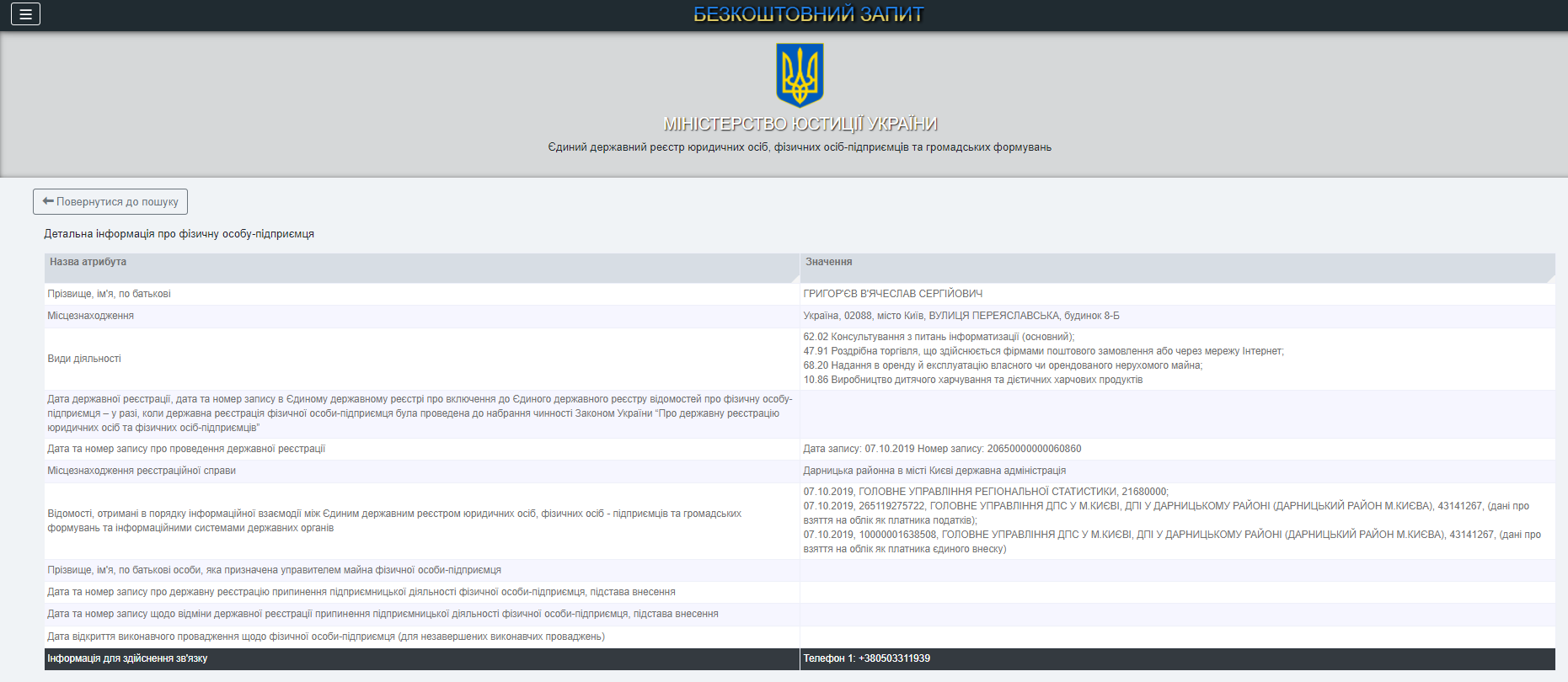 Это же учреждение существует не намного дольше предыдущего – его регистрация была осуществлена три месяца назад. Компания с уставным капиталом в размере 2 тыс. гривен принадлежит киевлянам и предпринимателям Вячеславу и Оксане Григорьевым. Так, как ФОП, Оксана Григорьева была зарегистрирована в июне этого года, сфера деятельности – образование. Вячеслав Григорьев с октября 2019 года занимается консультированием по вопросам информатизации.