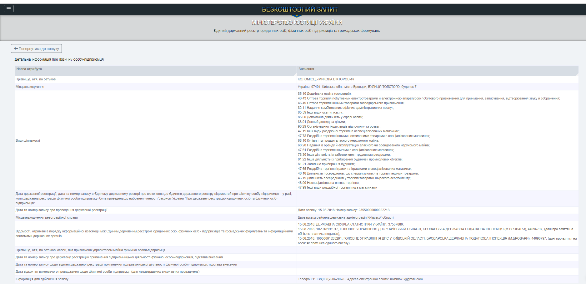 Свою предпринимательскую деятельность он начал еще в августе 2018 года. Кроме дошкольного образования, его деятельность также пересекается с оптовой торговлей бытовыми электротоварами и электронной аппаратурой бытового назначения, товарами хозяйственного назначения и тому подобное.