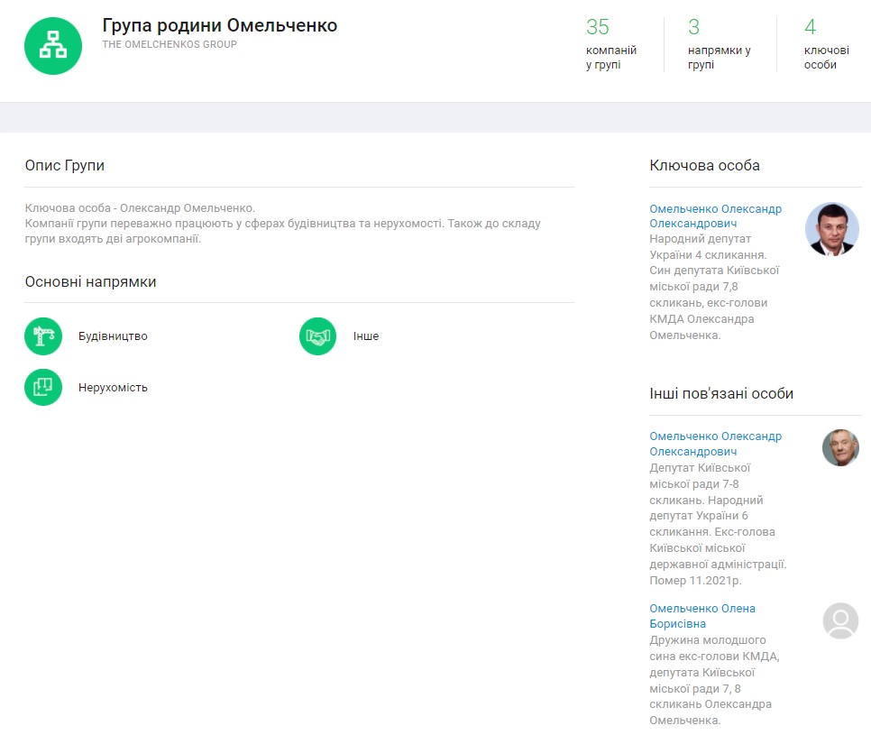 Система Youcontrol относит ООО “Смарт-Девелопмент” к группе компаний семьи Омельченко, которая объединяет более трех десятков предприятий, занятых в сфере недвижимости и строительства. На данный момент ключевое лицо этой группы – нардеп IV созыва Верховной Рады Александр Александрович Омельченко (на коллаже в центре), который приходится сыном экс-мэра Киева, экс-главы КГГА и экс-главы фракции “Единство” в Киевсовете Александр Александрович Омельченко (умер от коронавируса в ноябре 2021 года). Кто-то из них как раз и значится учредителем вышеупомянутого ООО.