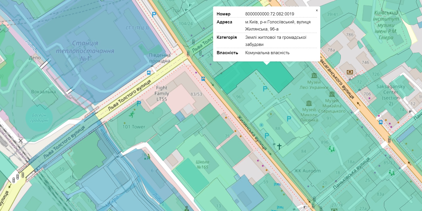Мова йде про ділянку площею 0,54 га на вул. Жилянській, 96-А (Голосіївський район) з цільовим призначенням “для будівництва, експлуатації та обслуговування офісно-житлового комплексу з допоміжними приміщеннями та паркінгом” (кадастровий номер – 8000000000:72:082:0019). Термін дії договору оренди цієї землі закінчився 25 липня 2022 року.