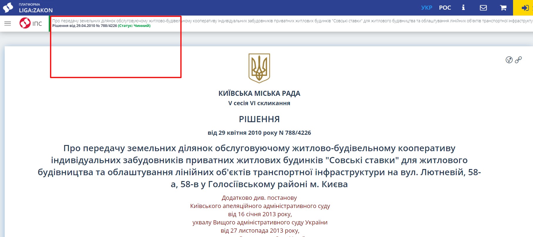 Судебное противостояние Киевсовета и городской прокуратуры продолжалось более года. Киевсовету удалось отстоять законность своего решение в 2013 году в Киевском апелляционном админсуде и Высшем админсуде, а в 2014 году – даже в Верховном суде.