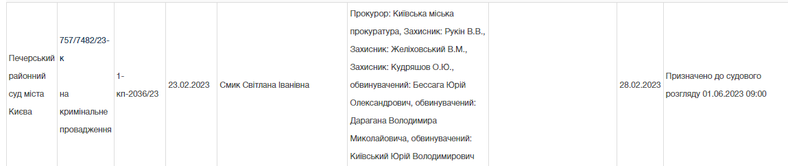 Вони є обвинуваченими в рамках кримінального провадження №42021100000000222, яке було відкрито Головним управлінням Нацполіції Києва 31 березня 2021 року. Обвинувальний акт був підготовлений столичною прокуратурою, на розгляд служителів Феміди він надійшов 23 лютого 2023 року.