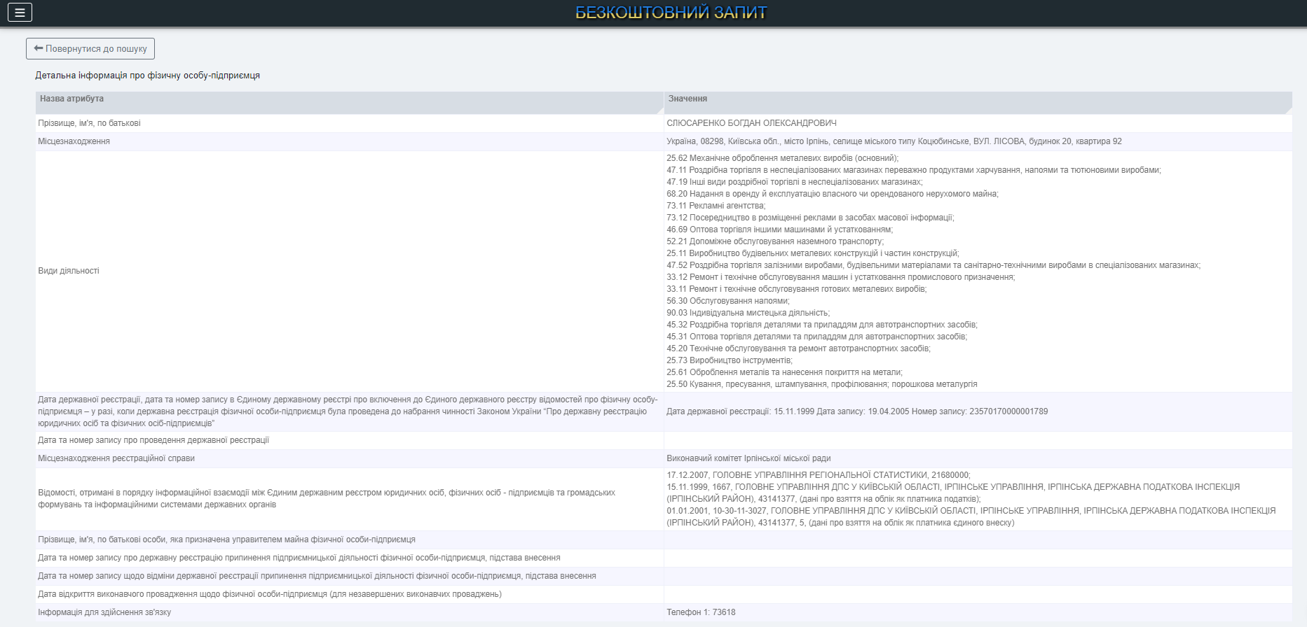 Як ФОП зареєстрований з 2017 року і займається наданням послуг мобільного харчування та ресторанами. У своїй декларації вказав, що має дві автівки: ВАЗ 21104 2005 року випуску та MAZDA 6 2014 року випуску. Займаючись підприємницькою діяльністю торік заробив 992 596 тис. гривень. Готівкою зберігає 30 тис. доларів, 5 тис. євро та 160 тис. гривень.