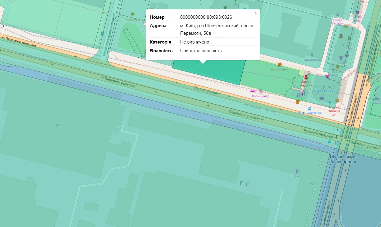 Даний об’єкт хочуть звести на ділянці площею 0,31 га – фактично в межах скверу “Слава танкістам”, над тунелем між станціями метро “Шулявська” та “Політехнічний інститут”. З 2004 року даною землею володіло ТОВ “Рінко”, у 2010 році її власником стало ТОВ “Шулявка”, а з 2018 року цю ділянку на підставі договору суперфіція (договір на право забудови землі. – KВ) використовує ОК “Ексон Прем’єр Шулявська” . Ця земля офіційно призначена “для будівництва, експлуатації та обслуговування торгово-офісного комплексу з рестораном швидкого харчування та благоустроєм та озелененням скверу”.